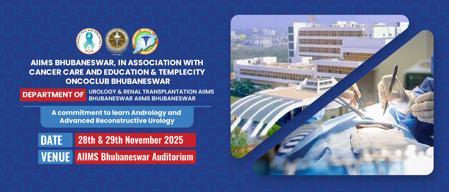The Organising Committee of RECON 2025 requests the honour of your participation in the Andrology and Reconstructive Urology Live Operative Workshop, organised by the Department of Urology and Renal Transplant, AIIMS Bhubaneswar, in association with Temple City Oncoclub and Cancer Care and Education, Bhubaneswar. The workshop will take place on 28–29 November 2025 at the AIIMS Auditorium, Bhubaneswar, and will feature live operative demonstrations conducted by eminent urologists from across the nation. This two-day programme will offer focused sessions on contemporary andrology and reconstructive urology techniques, hands-on learning through live surgeries, and interactive discussions with the operating faculty. Delegates are invited to attend the full programme to benefit from practical insights, evidence-based approaches, and opportunities for professional exchange.